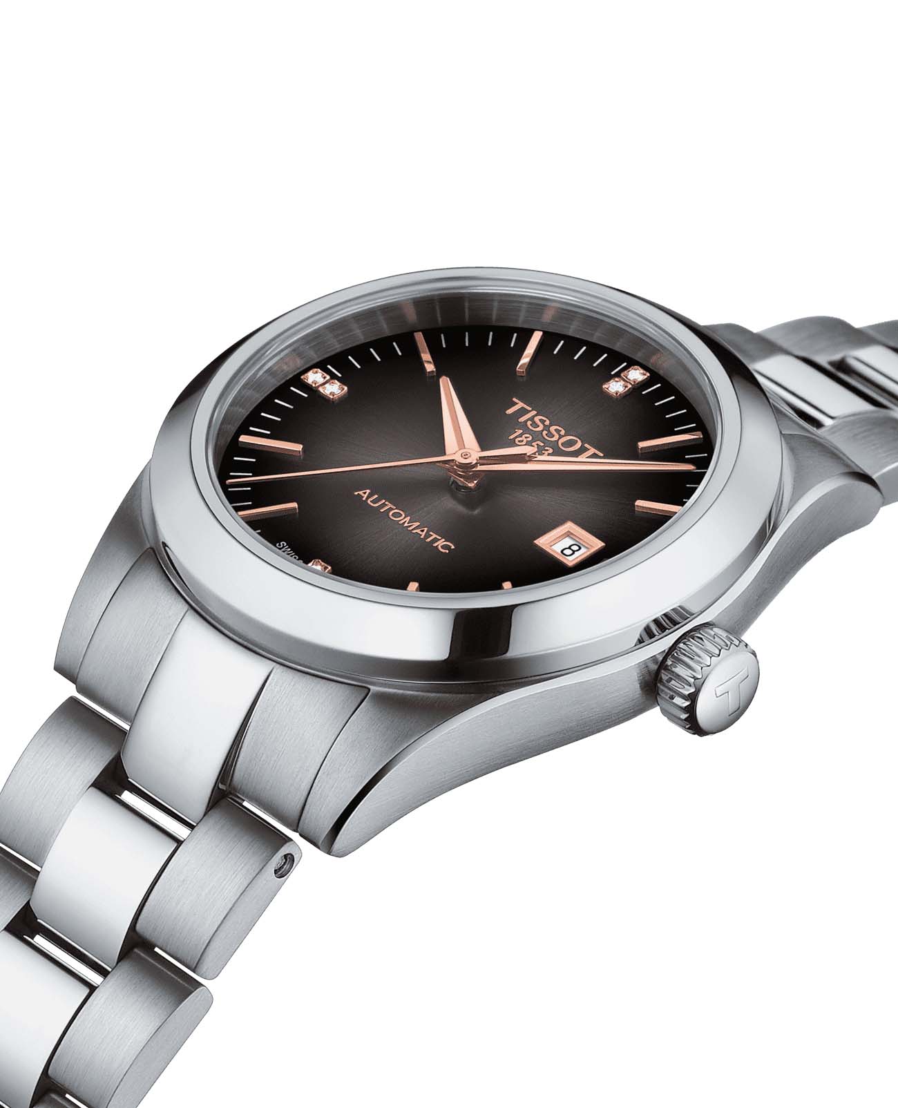 Женские швейцарские механические часы Tissot T-My Lady Automatic T132.007.11.066.01 станут роскошным украшением вашего образа. Наручные часы будут идеальным аксессуаром на торжественное мероприятие или бизнес-встречу. Корпус выполнен из нержавеющей стали 316L, мягкий блеск которого идеально гармонирует с серебристым стальным браслетом. Классический циферблат декорирован 8 бриллиантами в 0,016 карат, заменяющими индексы. Модель оснащена уникальным автоматическим механизмом ETA Powermatic 48.111, сохраняющим запас хода на 48 часов. Калибр украшен волновыми узорами, его безупречная отделка просматривается сквозь прозрачную заднюю крышку. Сапфировое стекло препятствует образованию царапин. На позиции 3 часов – апертура даты. Габариты: 29.3 x 29.3 x 10.6 мм. Производство и сборка: Швейцария.