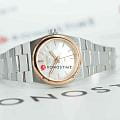 Часы Tissot PRX 25 мм T137.010.21.111.00 сочетают элегантный дизайн с современными технологиями. Корпус диаметром 25 мм выполнен из нержавеющей стали 316L, а безель имеет PVD-покрытиеPVDУльтратонкое покрытие наносится в технике вакуумного напыления, сочетает в себе нитрид титана особой прочности со слоем золота или оксида хрома. Несёт в себе декоративную или защитную функцию. розового золота, придающее часам изысканный вид. Циферблат из белого перламутра защищён сапфировым стекломСапфировое стеклоПрочный и надёжный материал из кристалла сапфира синтетического происхождения, характеризующийся особой твёрдостью и устойчивостью к царапинам и повреждениям., устойчивым к царапинам.