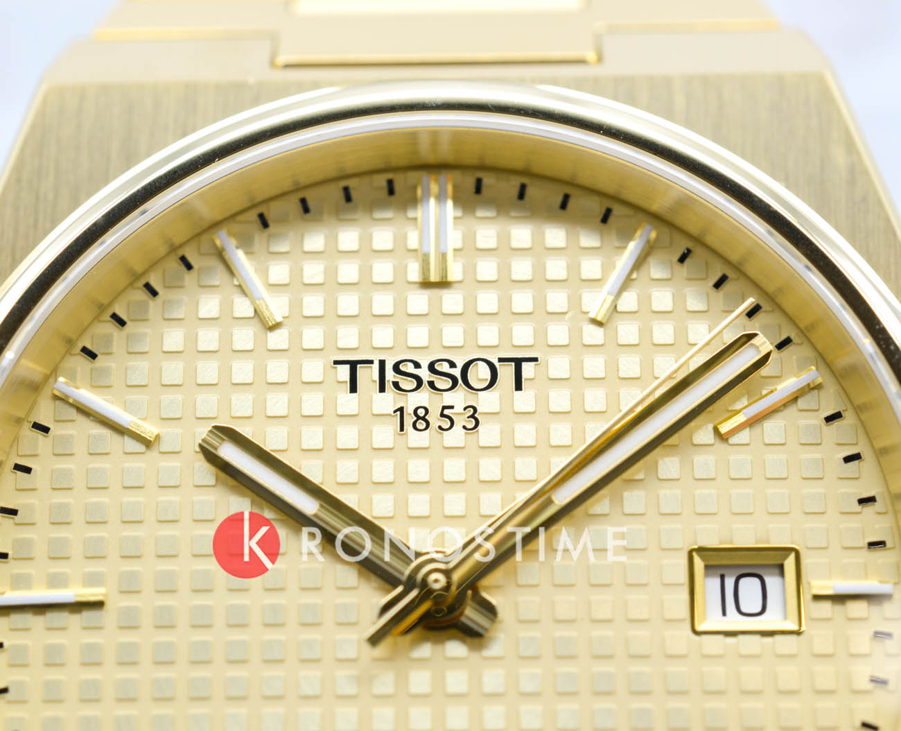 Tissot PRX Powermatic 80 (модель T137.407.33.021.00) – это элегантные часы, сочетающие современный дизайн с высокими технологиями. Корпус диаметром 40 мм выполнен из нержавеющей стали 316L с жёлтым PVD-покрытиемPVDУльтратонкое покрытие наносится в технике вакуумного напыления, сочетает в себе нитрид титана особой прочности со слоем золота или оксида хрома. Несёт в себе декоративную или защитную функцию., придающим часам роскошный вид. Шампанского оттенка циферблат украшен узором "шашечки" и защищён сапфировым стекломСапфировое стеклоПрочный и надёжный материал из кристалла сапфира синтетического происхождения, характеризующийся особой твёрдостью и устойчивостью к царапинам и повреждениям. с антибликовым покрытиемАнтибликовое покрытиеСлой оксида металла в 0,13-0,3 микрон, благодаря которому стекло часов не бликует и не отражает свет. Антибликовое покрытие уменьшает отражение света в 10 раз, обеспечивая отличную читаемость показателей циферблата., устойчивым к царапинам. Часы оснащены автоматическим механизмом Powermatic 80Powermatic 80Эксклюзивный калибр от швейцарской компании ETA с увеличенным запасом хода до 80 часов за счёт удлинённой заводной пружины. Характеризуется улучшенной системой спуска со сниженным трением. с запасом хода до 80 часов и антимагнитной спиралью баланса из сплава Nivachron™Nivachron™Специально разработанный инновационный сплав Nivachron™ повышает устойчивость часов к воздействию магнитных полей., обеспечивающей высокую точность хода. Браслет из нержавеющей стали с жёлтым PVD-покрытием оснащён застёжкой 'бабочка'Застёжка "бабочка"Такой вид застёжки дополняется предохранителями, помогающими избежать случайного раскрытия браслета. Обладают изящным исполнением. , обеспечивающей надёжную фиксацию и комфорт при ношении. Водонепроницаемость до 10 бар (100 метров) позволяет использовать часы при плавании и других водных активностях.