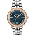 Оригинальный циферблат идеально смотрится в сочетании с элегантным безелемБезельВнешний ободок, закрепляющий стекло. В спортивных часах так называется поворотное кольцо с делениями на циферблате, выполняет роль таймера – замеряет отрезки времени на шкале. Неподвижный безель – элемент декора. Однонаправленно вращающийся безель на дайверских часах позволяет фиксировать моменты погружения и выныривания на поверхность., выполненным из 18-ти каратного розового золота18-каратное золотоОбозначение по каратной системе пробирования, оно показывает, сколько драгоценного металла содержится в изделии. 18 карат - в составе 75% чистого золота, соответствует 750 пробе.