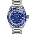 Мужские российские механические наручные часы Восток Командирские 02038А, механический механизм (автоматический калибр) с высокой точностью. Класс водозащиты: 200 метров, позволит плавать, нырять и заниматься другими водными видами спорта. Стрелки с люминесцентным покрытиемЛюминесцентное покрытиеПозволяет считывать показания времени в темноте. Производители наносят на стрелки, часовые индексы, безель или поверхность циферблата светонакопительный состав, дающий холодное свечение.. Вращающийся безельБезельВнешний ободок, закрепляющий стекло. В спортивных часах так называется поворотное кольцо с делениями на циферблате, выполняет роль таймера – замеряет отрезки времени на шкале. Неподвижный безель – элемент декора. Однонаправленно вращающийся безель на дайверских часах позволяет фиксировать моменты погружения и выныривания на поверхность. из нержавеющей стали с PVDPVDУльтратонкое покрытие наносится в технике вакуумного напыления, сочетает в себе нитрид титана особой прочности со слоем золота или оксида хрома. Несёт в себе декоративную или защитную функцию. покрытием. Окошко даты находится в положении 3 часа. Автоподзавод с предохранительным устройством от перезаводки пружины. Частота: 19800 полуколебаний/час. Браслет с раскладной застёжкойРаскладная застёжкаТакой тип застёжки используется только на браслетах из металла. Она никогда не раскрывается полностью, происходит разделение на 2 и более частей. Раскладывающая застёжка снизит вероятность потери часов к минимуму..