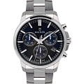 Надежный стальной браслет оснащен раскладывающейся застежкойРаскладная застёжкаТакой тип застёжки используется только на браслетах из металла. Она никогда не раскрывается полностью, происходит разделение на 2 и более частей. Раскладывающая застёжка снизит вероятность потери часов к минимуму., обеспечивающей комфорт и удобство при ношении. Рифленая заводная головка с защитой добавляет дополнительную прочность и долговечность механизму.