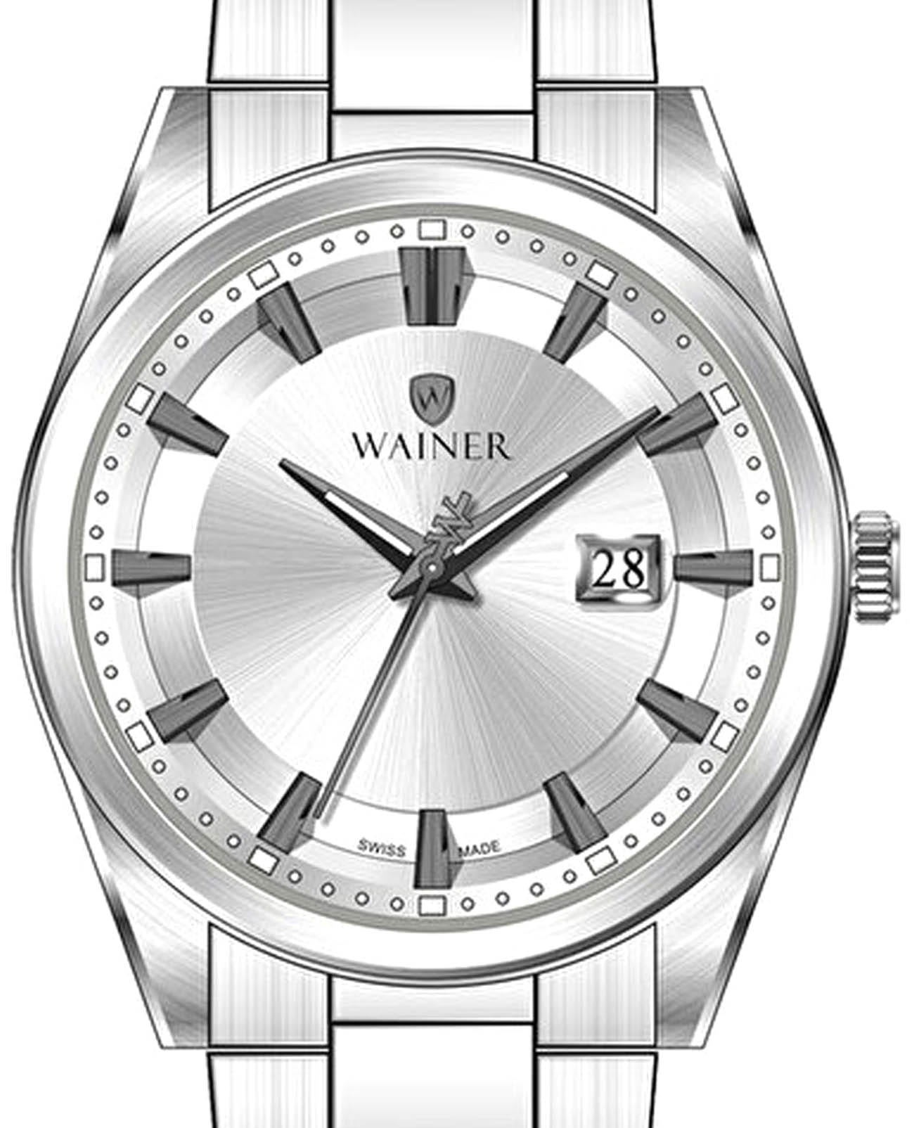 Мужские кварцевые часы WA.17200-A сочетают в себе элегантный дизайн и высокое качество исполнения. Корпус выполнен из нержавеющей стали серебристого цвета диаметром 41 мм, обеспечивает прочность и долговечность. Циферблат с метками в виде штрихов выполнен по технологии Sunray (солнечные лучи) и украшен фирменным логотипом Wainer. Сапфировое стеклоСапфировое стеклоПрочный и надёжный материал из кристалла сапфира синтетического происхождения, характеризующийся особой твёрдостью и устойчивостью к царапинам и повреждениям. защищает дисплей от царапин и механических повреждений. Окошко даты находится в положении 3 часа. Стрелки с люминесцентным покрытиемЛюминесцентное покрытиеПозволяет считывать показания времени в темноте. Производители наносят на стрелки, часовые индексы, безель или поверхность циферблата светонакопительный состав, дающий холодное свечение., улучшая читаемость в условиях недостаточного освещения. Стальной браслет на застёжке-бабочкеЗастёжка "бабочка"Такой вид застёжки дополняется предохранителями, помогающими избежать случайного раскрытия браслета. Обладают изящным исполнением. обеспечивает комфортное ношение на запястье. Водонепроницаемость до 50 метров позволит защитить корпус от случайных брызг или капель дождя. Wainer — это стильный и надежный аксессуар для тех, кто ценит швейцарское качество и современные технологии.