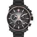 Wainer WA.19200-B – элегантные швейцарские часы, сочетающие современный дизайн с высококачественными материалами. Корпус и браслет выполнены из нержавеющей стали 316L с PVDPVDУльтратонкое покрытие наносится в технике вакуумного напыления, сочетает в себе нитрид титана особой прочности со слоем золота или оксида хрома. Несёт в себе декоративную или защитную функцию.-покрытием, придающим глубокий чёрный оттенок и повышенную стойкость к износу. Сапфировое стеклоСапфировое стеклоПрочный и надёжный материал из кристалла сапфира синтетического происхождения, характеризующийся особой твёрдостью и устойчивостью к царапинам и повреждениям. обеспечивает защиту от царапин и кристальную прозрачность, сохраняя безупречную читаемость чёрного циферблата. Функциональность дополняется хронографомХронографФункция позволяет измерять отрезки времени с особой точностью: часы, минуты, секунды. Верным признаком хронографа является наличие на циферблате 3 дополнительных окошек-счётчиков. для точного измерения времени и индикатором даты для удобства. Водонепроницаемость 100 метров позволяет использовать часы при повседневном ношении и лёгких водных активностях.
